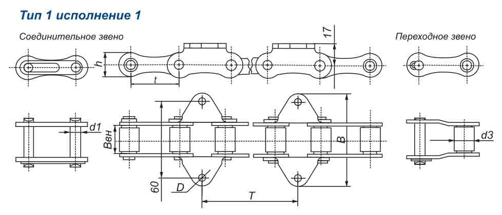 Цепь ТРД-38 - 4600 1-1-8-Т Транспортерные роликовые длиннозвенные цепи ТРД Тип 1 исполнение 1 используются для планчатых транспортеров с креплением, гребенки, планки, или другого элемента транспортера.